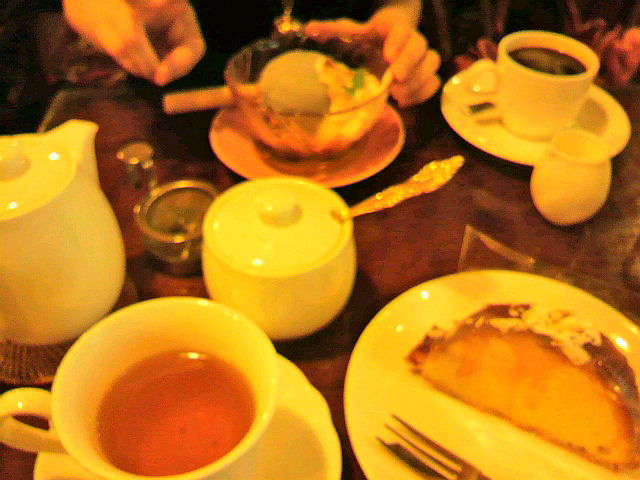 アールグレイとはちみつケーキ食べました。友人はコーヒーと黒胡麻アイス。アイスのクリームにはブランデー入ってたぽい。