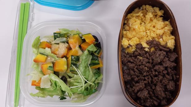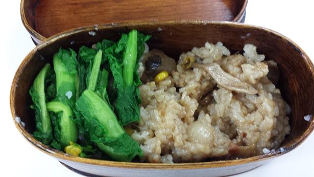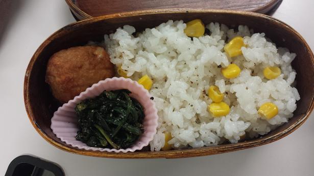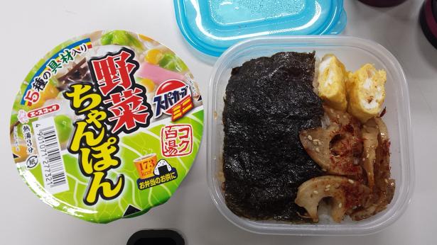 おかず:ボイル菜の花。魚肉ソーセージ。ポテト。