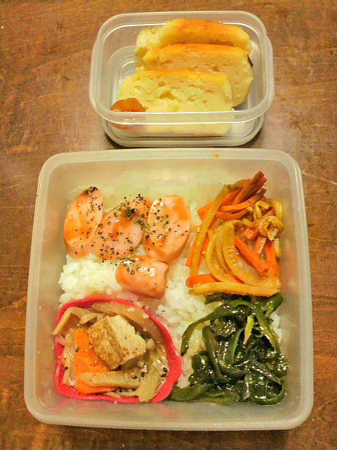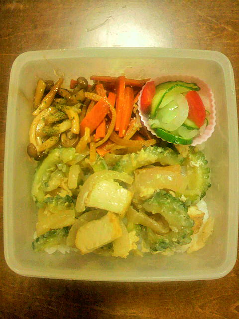 おつとめ品袋にゴーヤが混ざってたので、初めてゴーヤチャンプル作ってみた。苦み抜き出来てなくて苦かったので、弁当用は苦み抜き成功品。