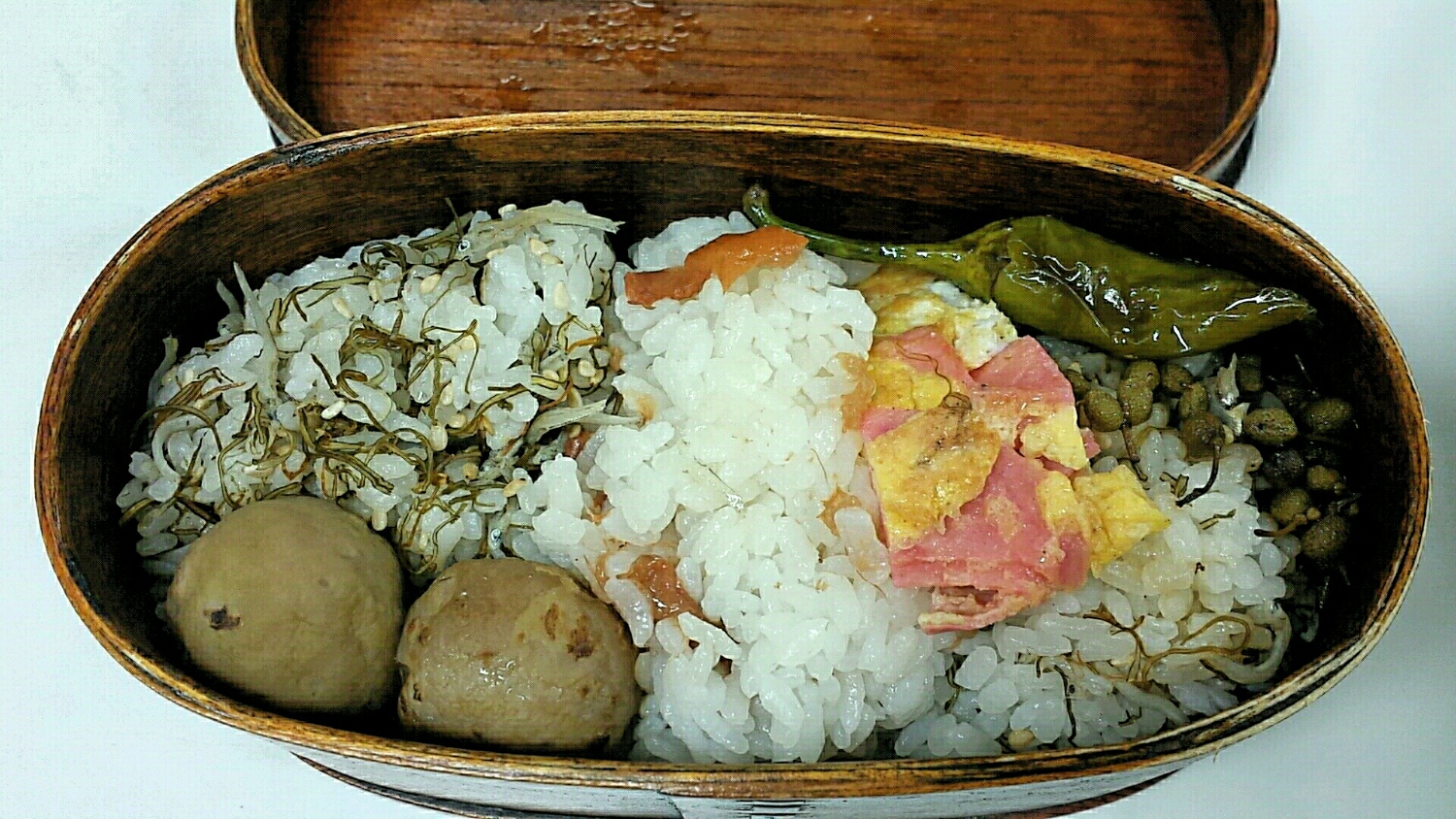 ・おにぎり三個(じゃこ昆布ふたつと梅干しひとつ)