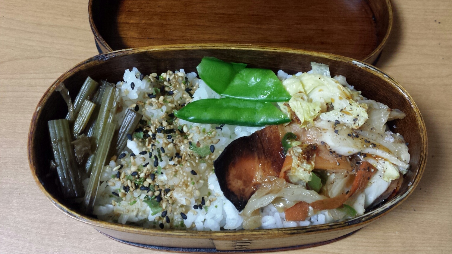 冷凍庫にものがあふれてたので少ないものから使っていこう。というわけでシュウマイとからあげは冷凍です。レンコンと炒めた野菜も冷凍。さやえんどうも冷凍。