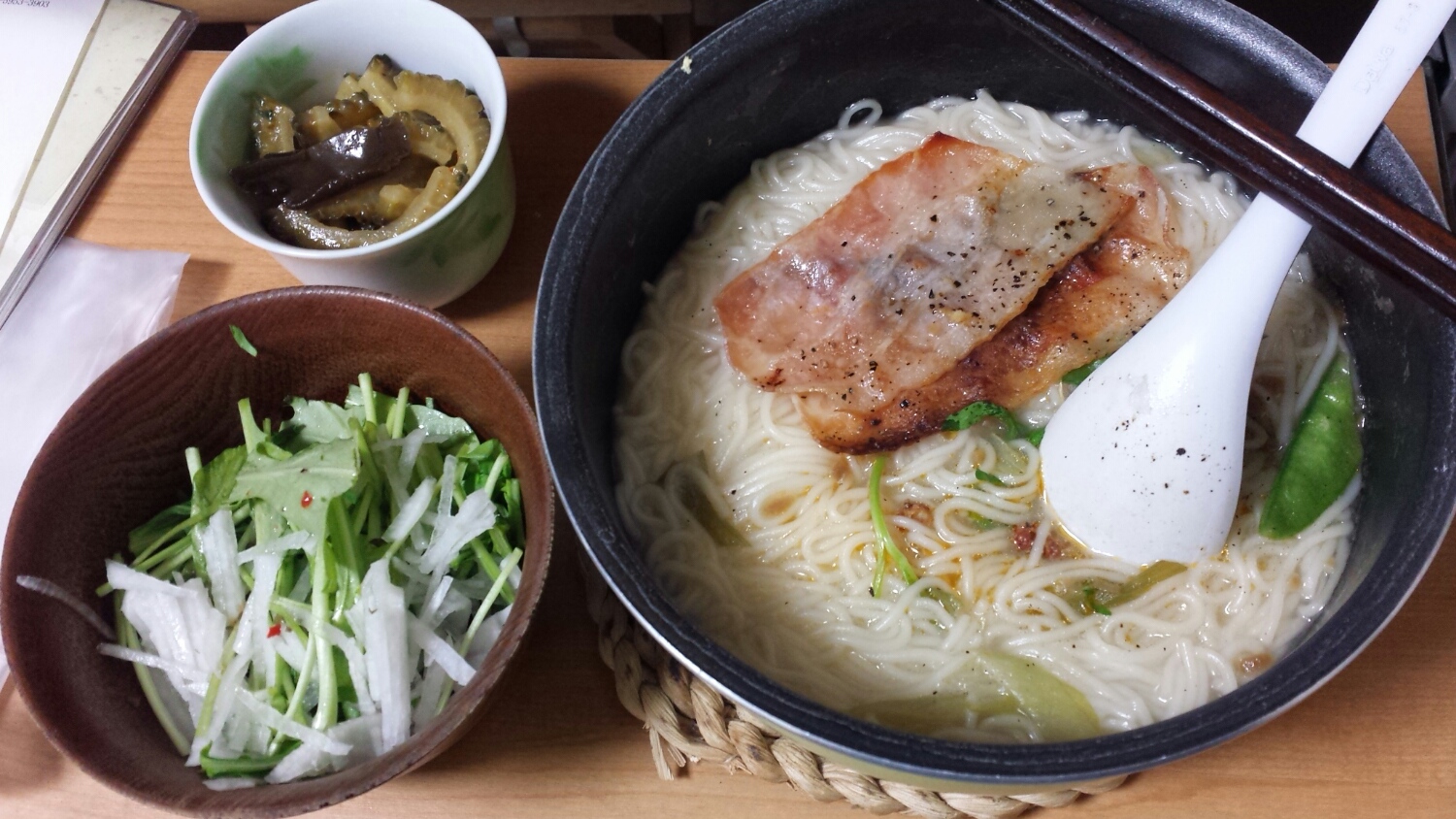 あとサラダもつけたんだけど撮り忘れた。下と同じ、大根と水菜のサラダ。