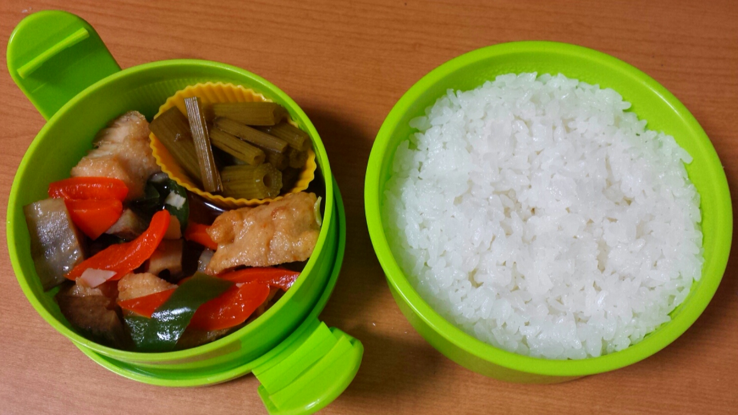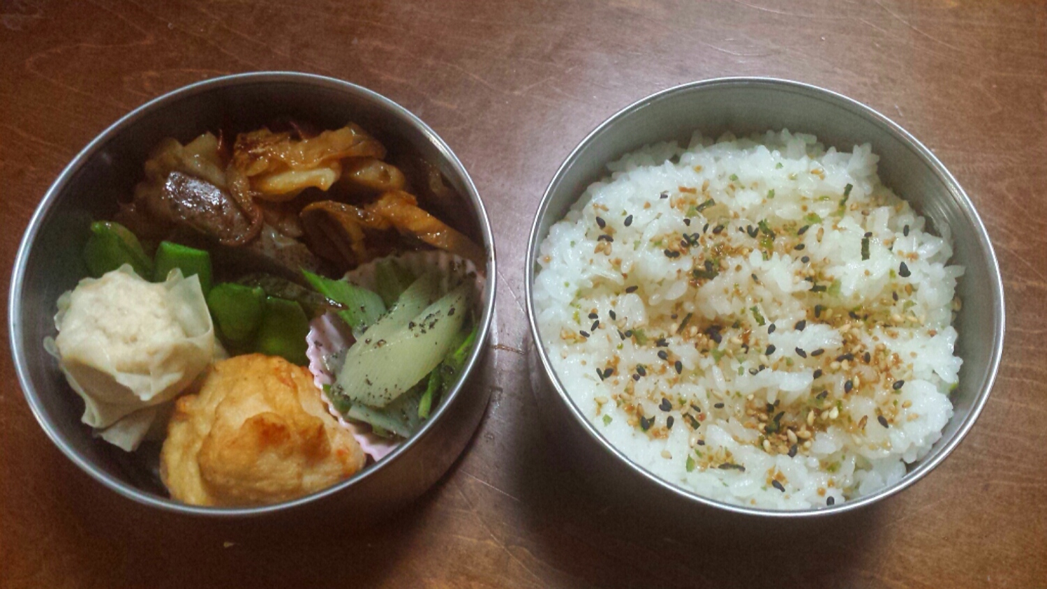 冷凍庫にものがあふれてたので少ないものから使っていこう。というわけでシュウマイとからあげは冷凍です。レンコンと炒めた野菜も冷凍。さやえんどうも冷凍。