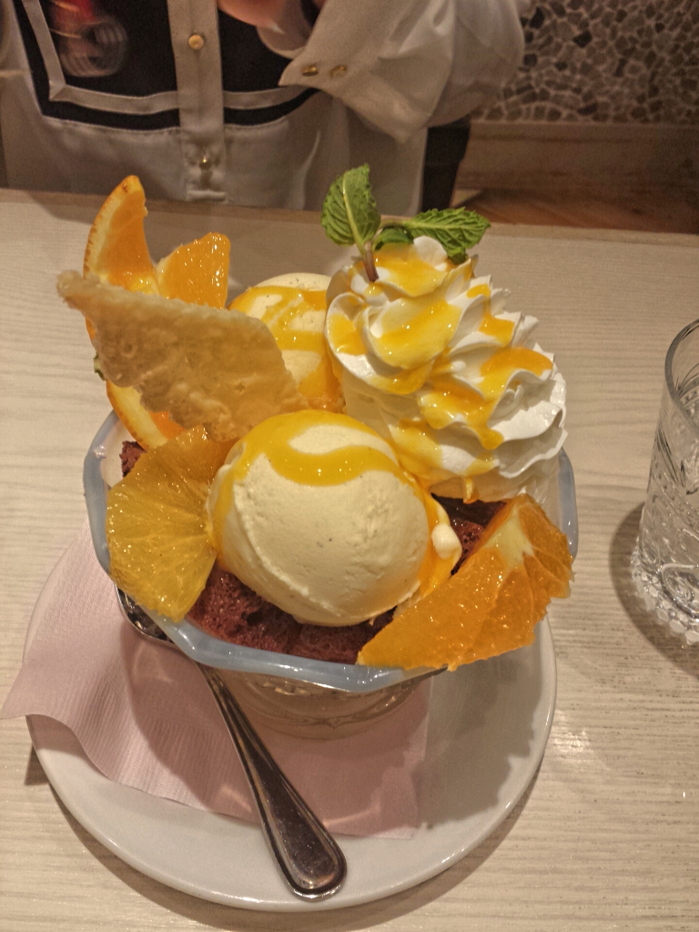 友人の頼んだ柑橘系のサンデー。一口オレンジ貰ったけど実に甘くてうまかった。