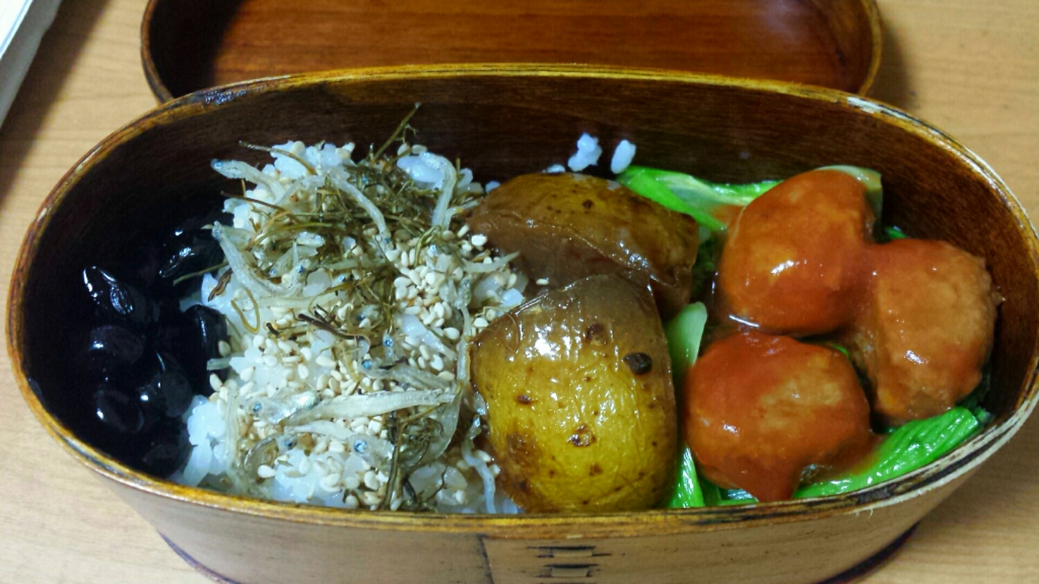 煮卵とじゃがいもはスペアリブと煮込んだやつ。てりってりに出来た!流石に骨付き肉は弁当にはちょっとと理性が働いたので自制した。