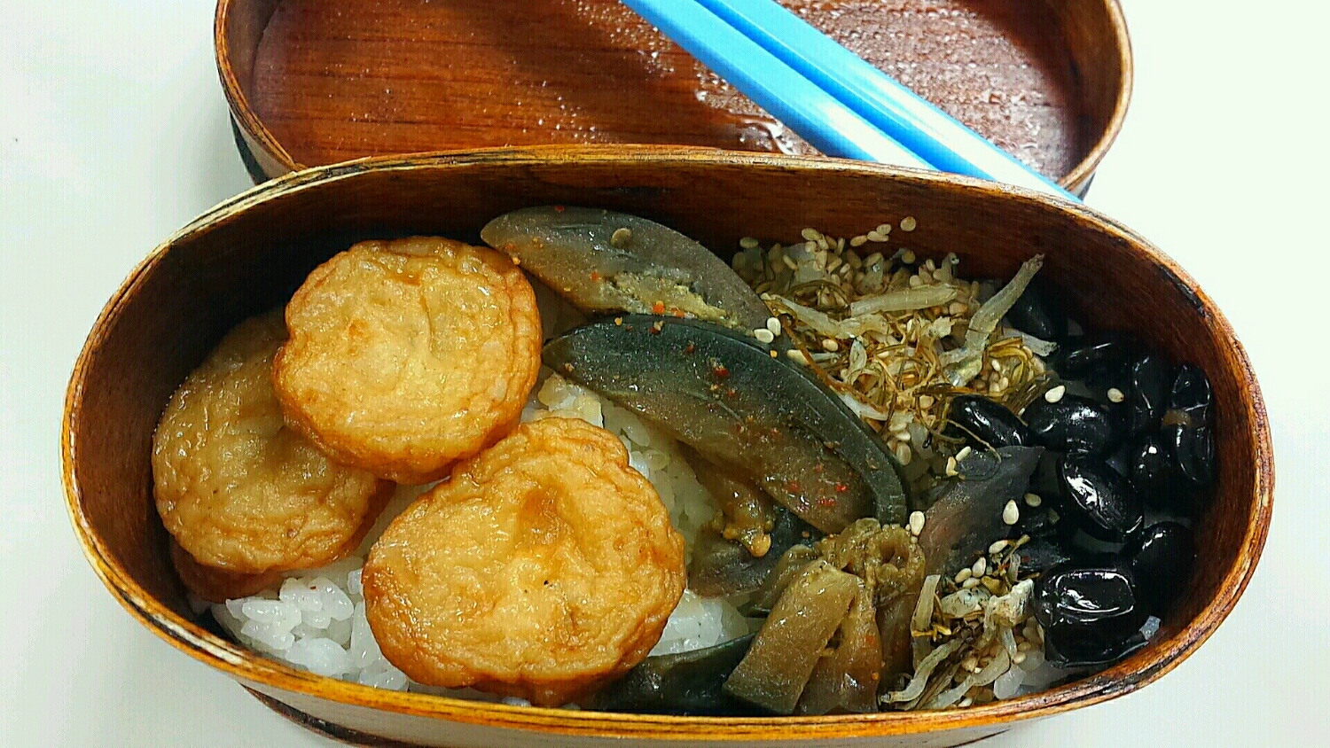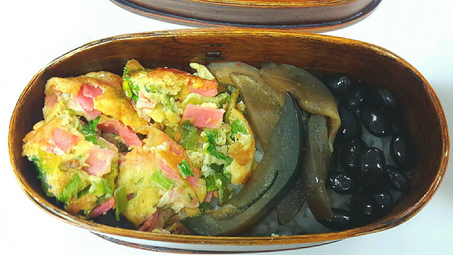 時間なくて朝冷蔵庫の常備菜のみで詰めた。なんとか形になるもんだ。